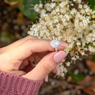 1.33 CT Pear Cut Halo Moissanite Engagement Ring