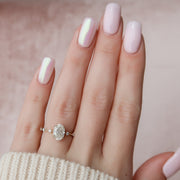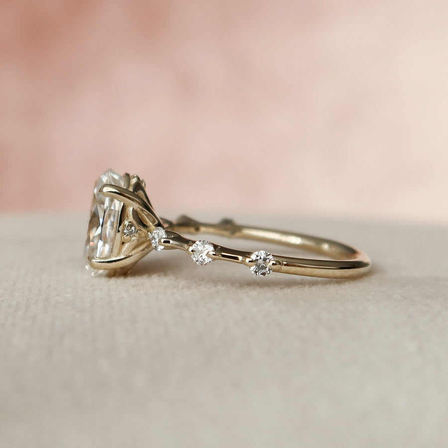1.5 CT Oval Cut Dainty Pave & Solitaire Moissanite Engagement Ring