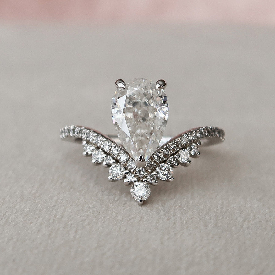 ✦ The Ring Shown in the Picture Holds a Beautiful 1.5 CT Pear Cut Moissanite.