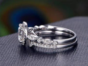 1.5 CT Round Cut Halo Pave Setting Moissanite Bridal Ring Set