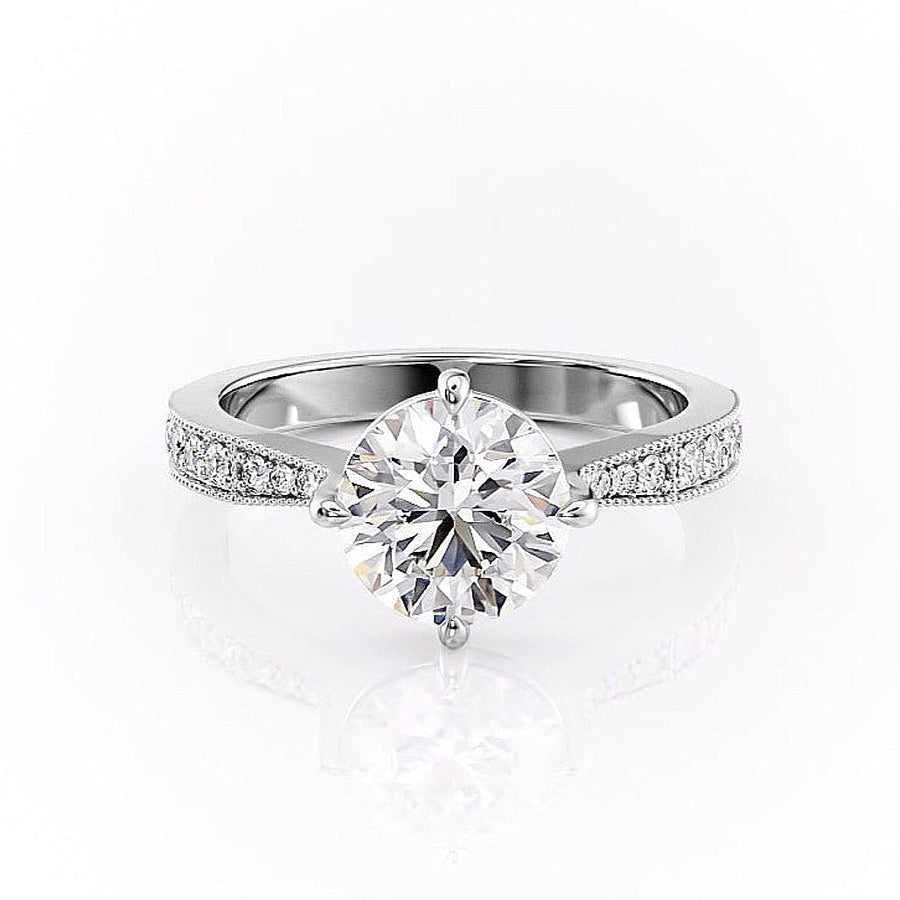 1.60 CT Round Cut Solitaire Milgrain Pave Set Moissanite Engagement Ring