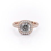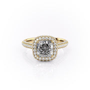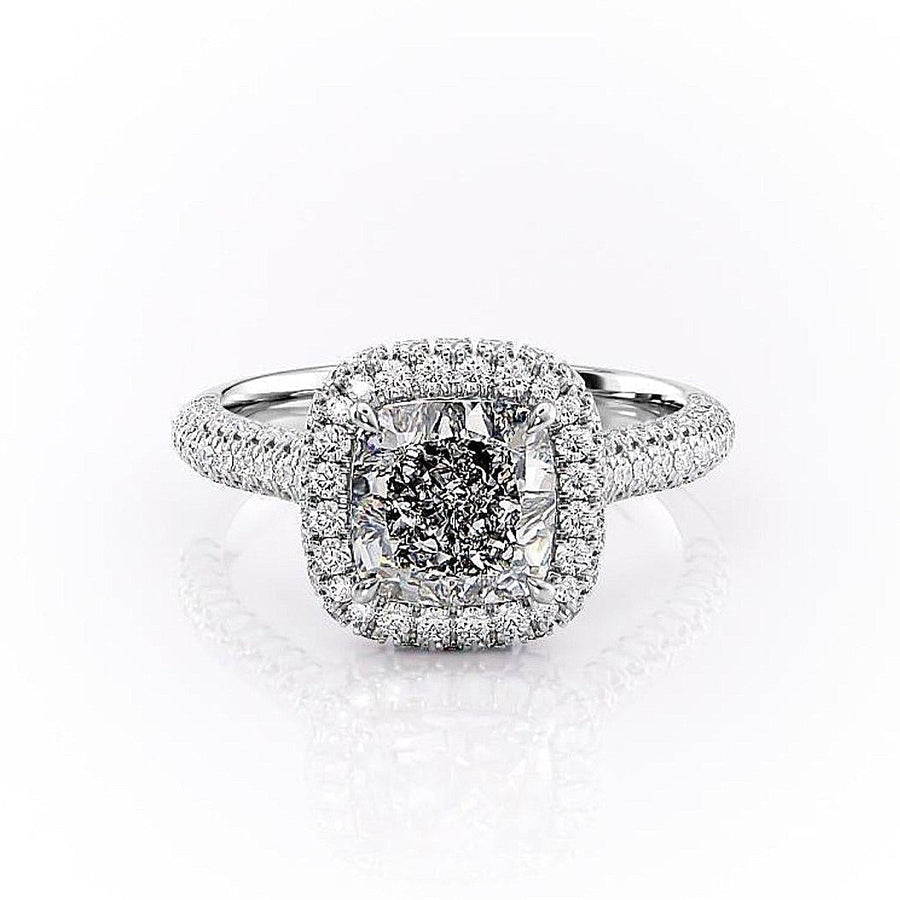1.8 CT Cushion Cut Halo Triple Pave Setting Moissanite Engagement Ring