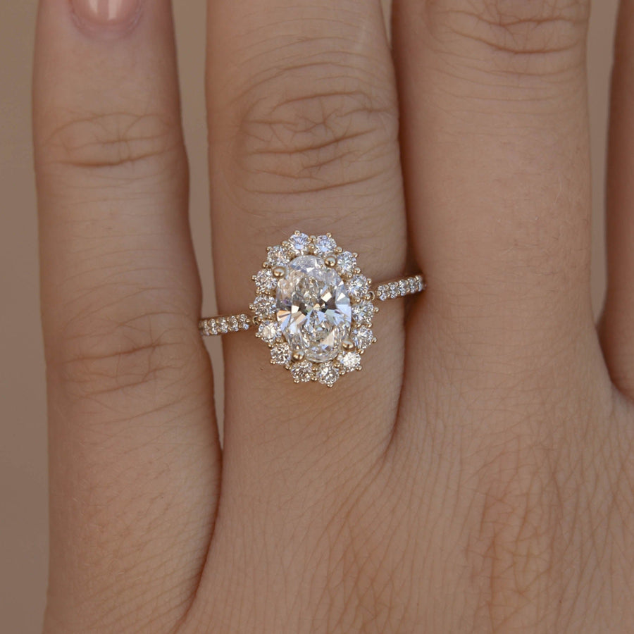 1.91 CT Oval Halo Style Moissanite Engagement Ring
