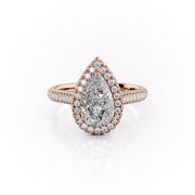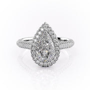 2.0 CT Pear Cut Halo Triple Pave Moissanite Engagement Ring