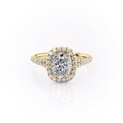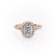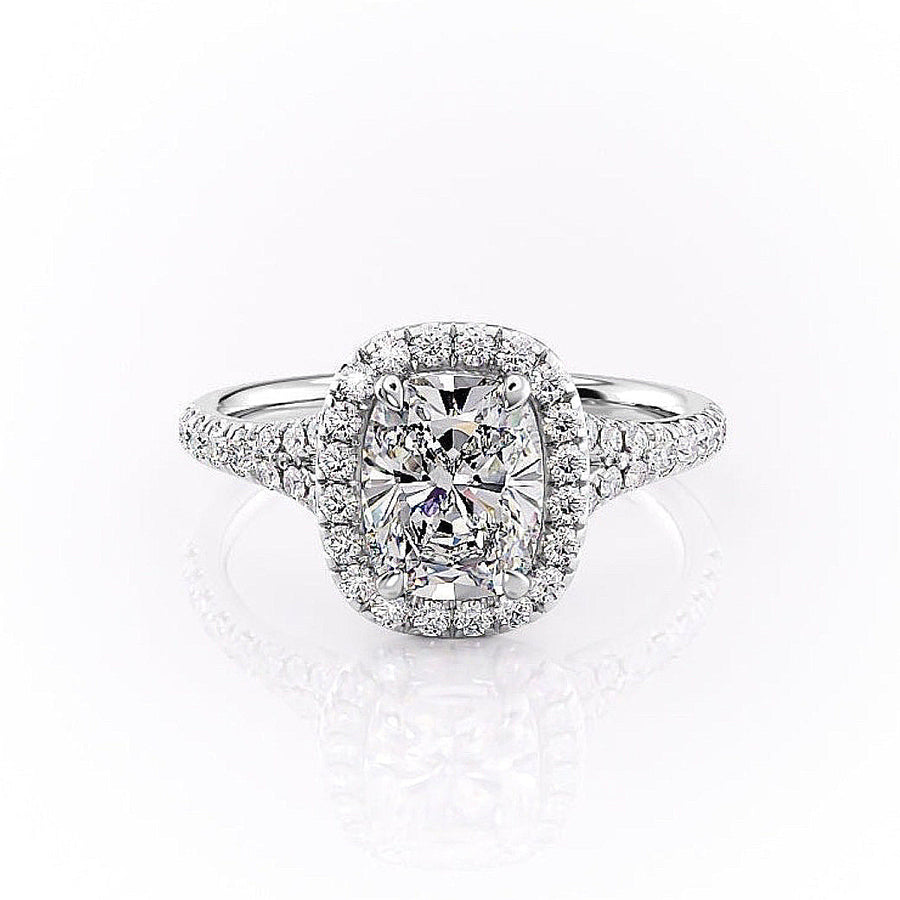 2.0 Elongated Cushion Cut Halo Split Shank Setting Moissanite Engagement Ring
