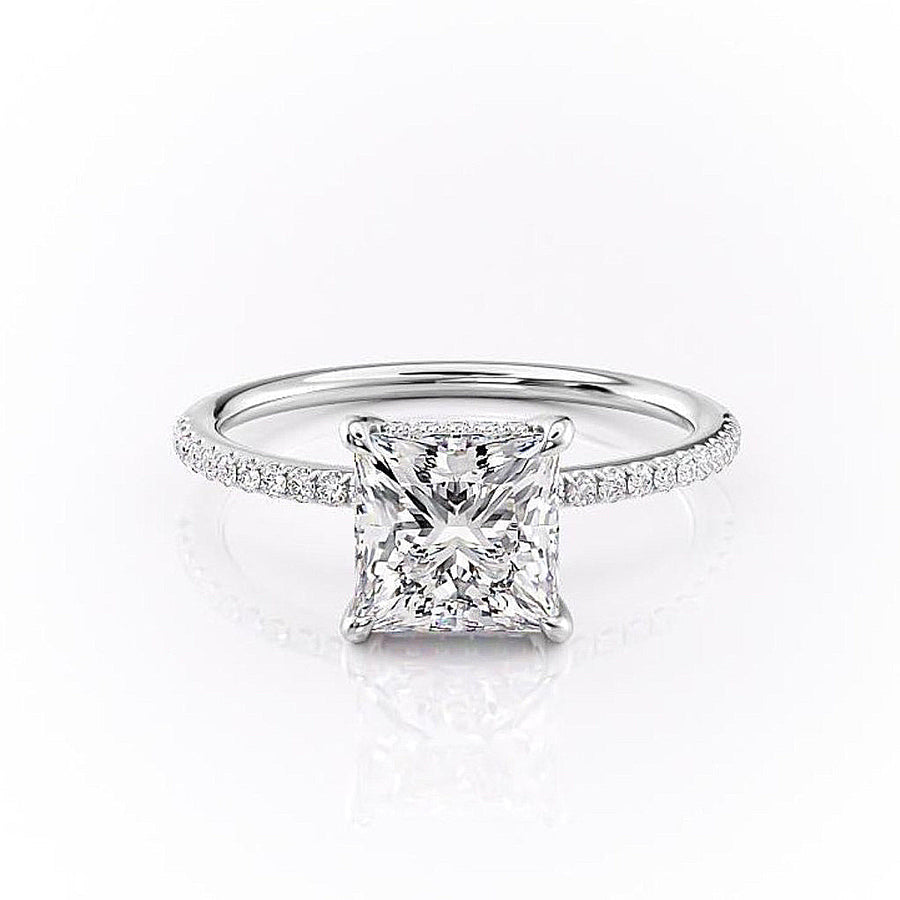 2.08 CT Princess Cut Solitaire Pave Setting Moissanite Engagement Ring