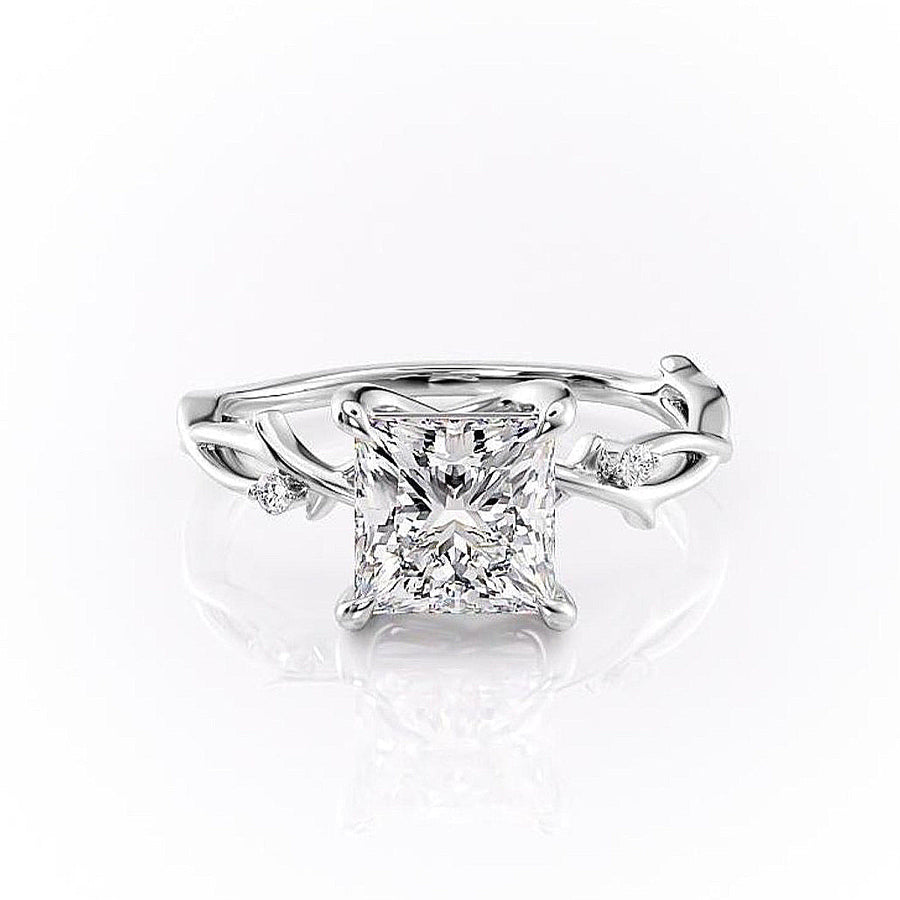 2.08 CT Princess Cut Solitaire Twig Style Moissanite Engagement Ring