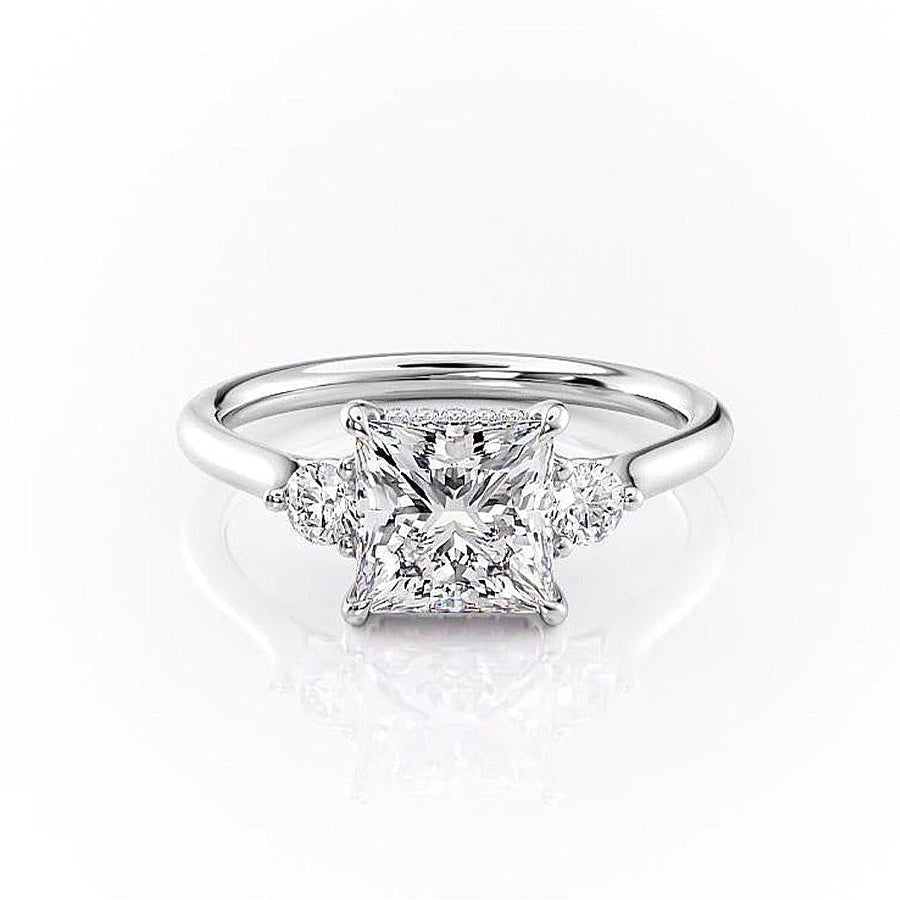 2.08 CT Princess Cut Three Stone Moissanite Engagement Ring