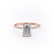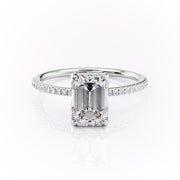 2.10 CT Emerald Cut Hidden Halo Pave Setting Moissanite Engagement Ring