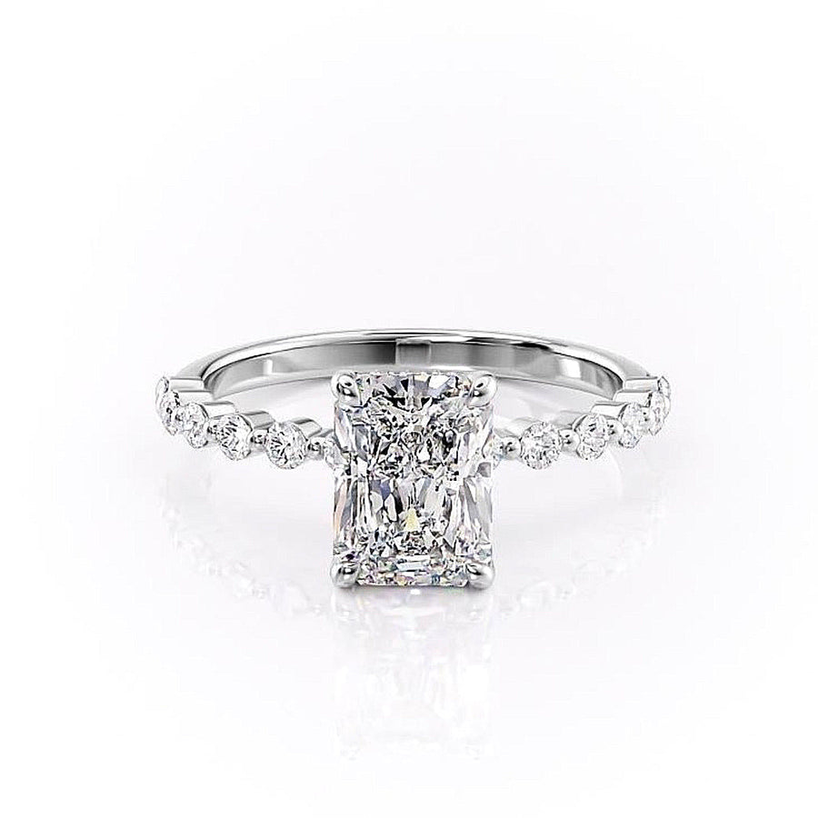 2.10 CT Radiant Solitaire Pave Setting Moissanite Engagement Ring