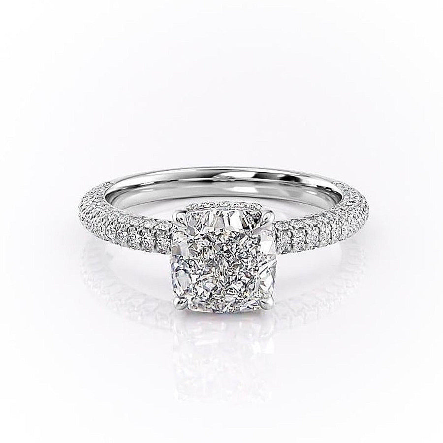 2.54 CT Cushion Cut Pave Moissanite Engagement Ring