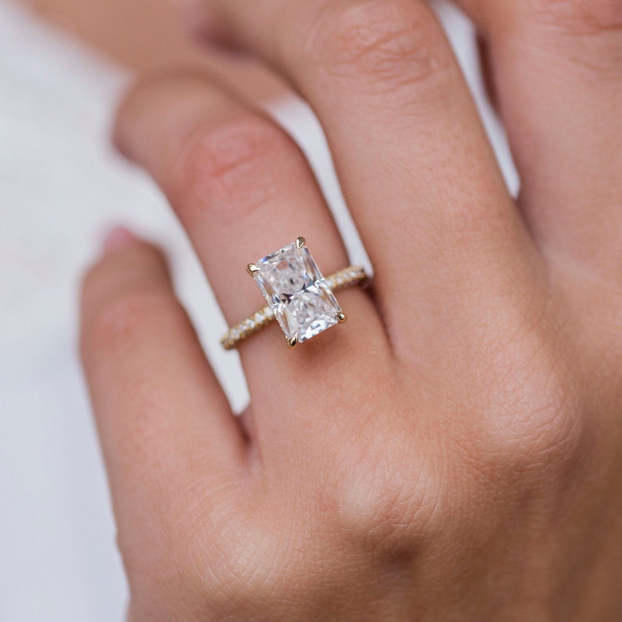 3.0 CT Radiant Solitaire Hidden Halo & Pave Moissanite Engagement Ring