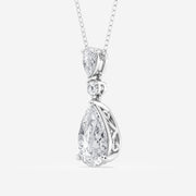 Elevate your look with this stunning moissanite necklace, a guaranteed statement piece. The meticulously crafted design features a sparkling 3.5 carat pear shaped diamond moissanite center stone, complemented by delicate round and pear-cut moissanite accents. We use only the highest quality materials and expert craftsmanship to ensure this necklace will be a treasured heirloom for years to come.
