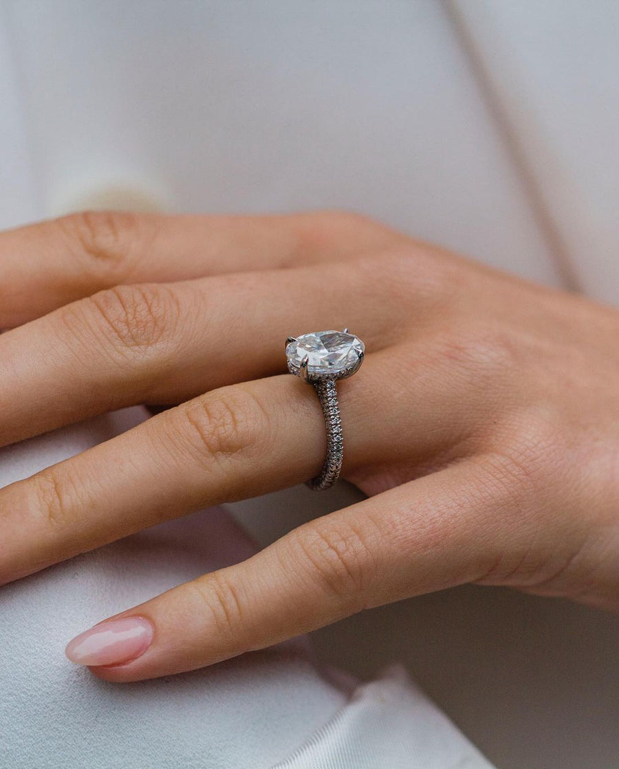 3.50 CT Oval Solitaire Hidden Halo Moissanite Engagement Ring