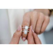4.0 CT Emerald Solitaire Hidden Halo & Pave Moissanite Engagement Ring