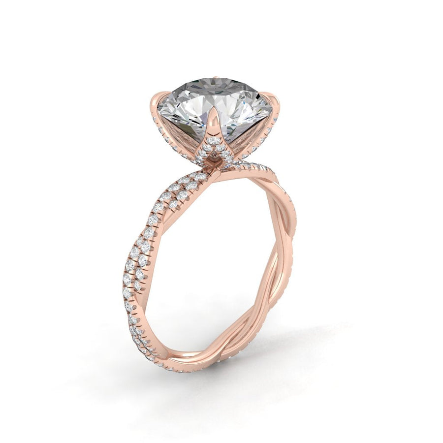 4.11 CT Round Cut Twisted Pave Moissanite Engagement Ring