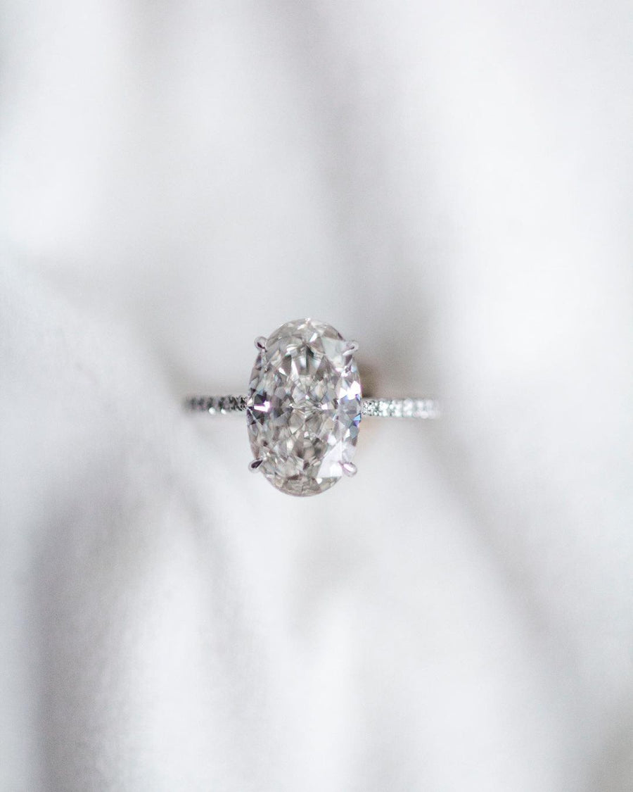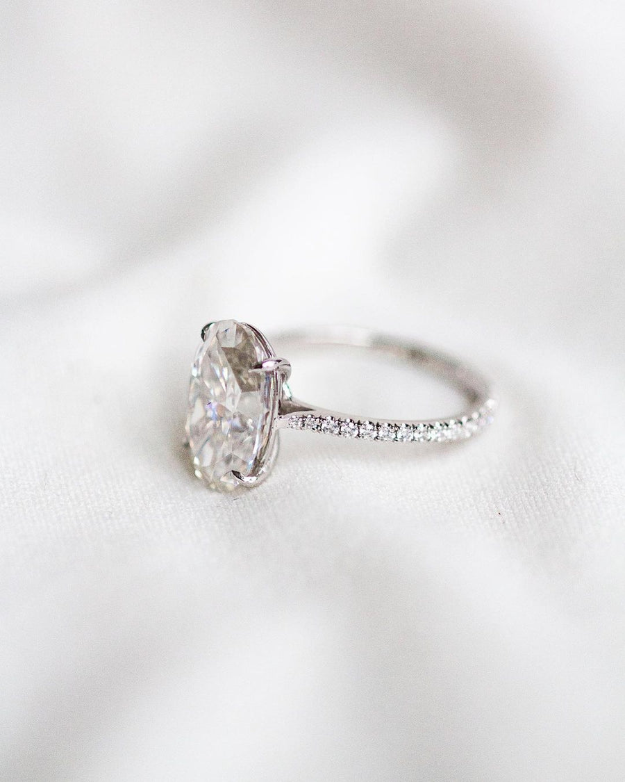 ✦ The Ring Shown in the Picture Holds a Beautiful 6.48 CT Crushed Ice Oval Cut Moissanite.